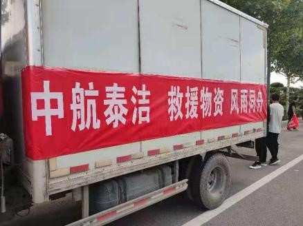 7月27日,兩車滿載著河南中航泰潔科技有限公司捐贈的應急救災物資運抵周口市扶溝縣紅十字會。伊利純牛奶100箱,八寶粥100箱、鹵…